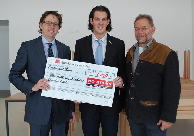 Mehr als ein halbes Jahrhundert lang war die Landshuter Traditionsfirma Neumaier – alles fürs Büro in der Schwestergasse beheimatet, bis sie vor fünf Jahren wegen des gewachsenen Platzbedarfs ins Industriegebiet gezogen ist. Dass der architektonisch anspruchsvolle Firmensitz in der Neidenburgerstraße nur einen Katzensprung vom neu gebauten Bürgerhaus entfernt ist, mag einer der Gründe gewesen sein, dass sich Neumaier zu der Spende entschlossen hat. Vor allem war es aber die Idee, die hinter dem Projekt steckt: „Uns gefällt die soziale Zielsetzung des Hauses und die Tatsache, dass es hier in der direkten Nachbarschaft Hilfe zur Selbsthilfe bietet“, sagte Thomas Leib, der die Firma in dritter Generation führt.
