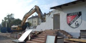 Nach dem einstimmigen Votum des Sitftungsrates am 21. September zum Bau des Bürgerhauses rollten unmittelbar danach die Bagger der Firma Isarkies. Das stark in die Jahre gekommene Vereinsheim des FC Eintracht macht Platz für das Bürgerhaus Landshut, das an derselben Stelle gebaut wird.