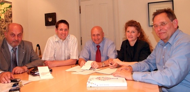 Auf dem Bild (v.l.n.r.): Rupert Aigner, Prof. Dr. Thomas Küffner, OB Hans Rampf, Anke Humpeneder-Graf, Ulf-Arne von Trotha
